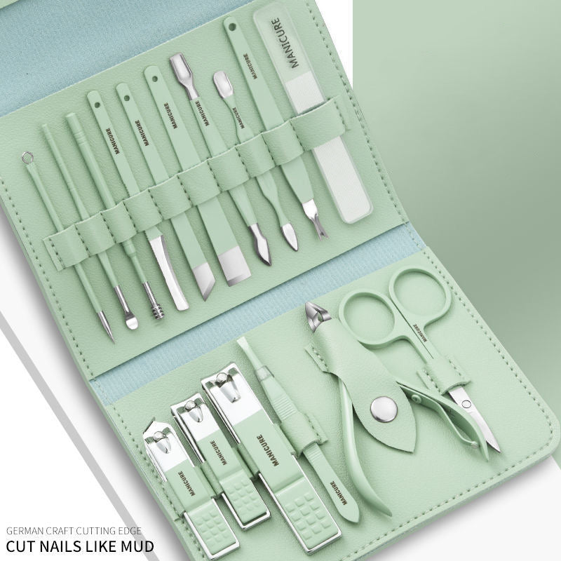 High Quality 16 Pcs Stainless Steel Nail Clipper Nail Cuticle Scissors Toenail Cutter Grooming Kit Pedicure Manicure Set